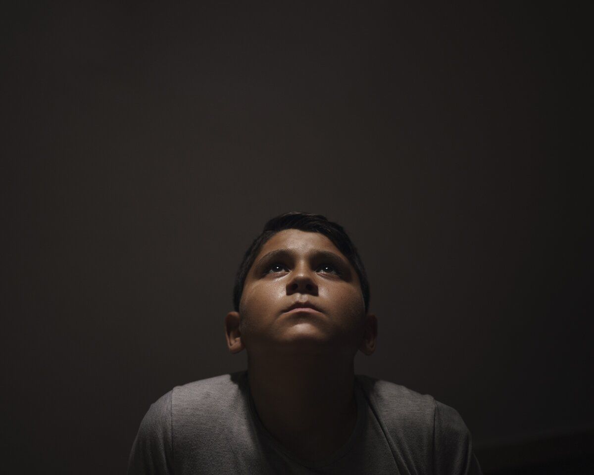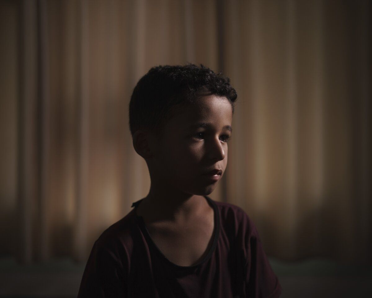 Haziran 19, 2021 | Beit Lahia, Gazze Şeridi | 11 yaşındaki Youssef al-Madhoun, evinde bir portre için poz veriyor. Youssef, havai fişeklerin patlama sesini veya metal bir kapının yüksek sesle kapandığını duyduğunda dehşete düşer. Savaş geri dönüyor. Yusuf, kardeşi ve ailesi, Ramazan ayının son günü öğleden sonra geç saatlerde, İsrail ateşinin ilk turları duyulurken evlerinden kaçtı. Gazze Şeridi'nin kuzeyindeki Beyt Lahia'nın daha kalabalık bir mahallesindeki büyük büyükbabasının evinde daha güvende olacaklarını düşünüyorlardı.