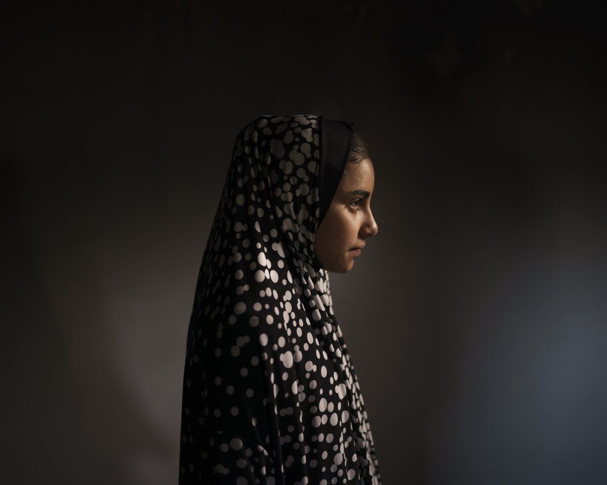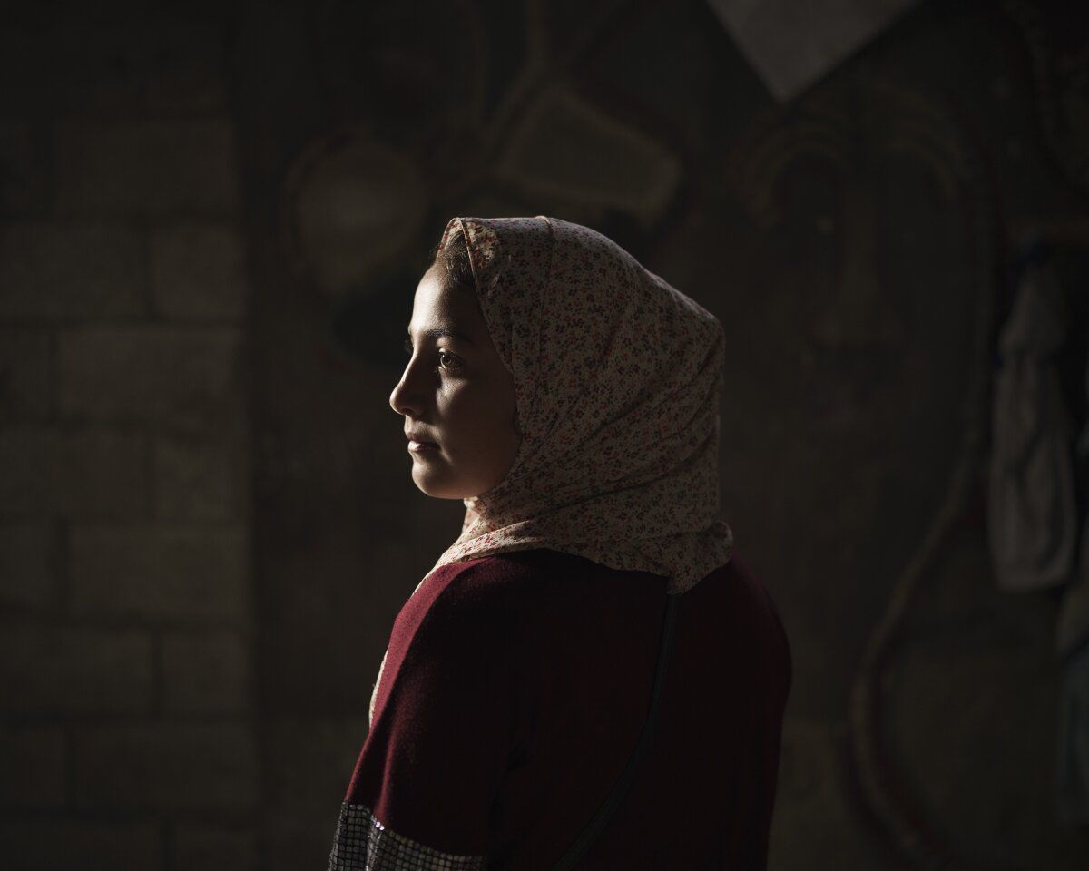 Haziran 20, 2021 | Beit Hanoun, Gazze Şeridi | 14 yaşındaki Batool al-Masri, evinde bir portre için poz veriyor. Her şey bir anda, 6 Mayıs'ta saat 10.2 civarında oldu. El-Masri ailesi, Gazze'nin İsrail sınırına bakan evlerinin yanındaki Beyt Hanun'daki açık bir tarlada buğday hasadı yapıyordu. Çocuklar, Müslümanların kutsal Ramazan ayında yetişkinler gün boyu oruçlarını açmaya hazırlanırken oynadılar. Her zamanki gibi, Batool kuzeni Yazan'ı taşıdı, henüz 1 yaşında bir yürümeye başlayan çocuktu.