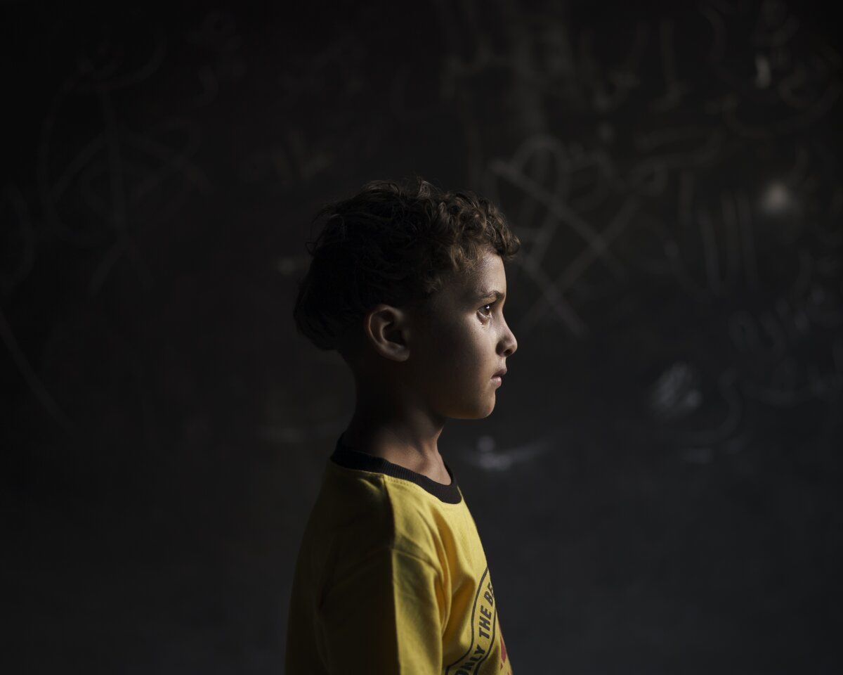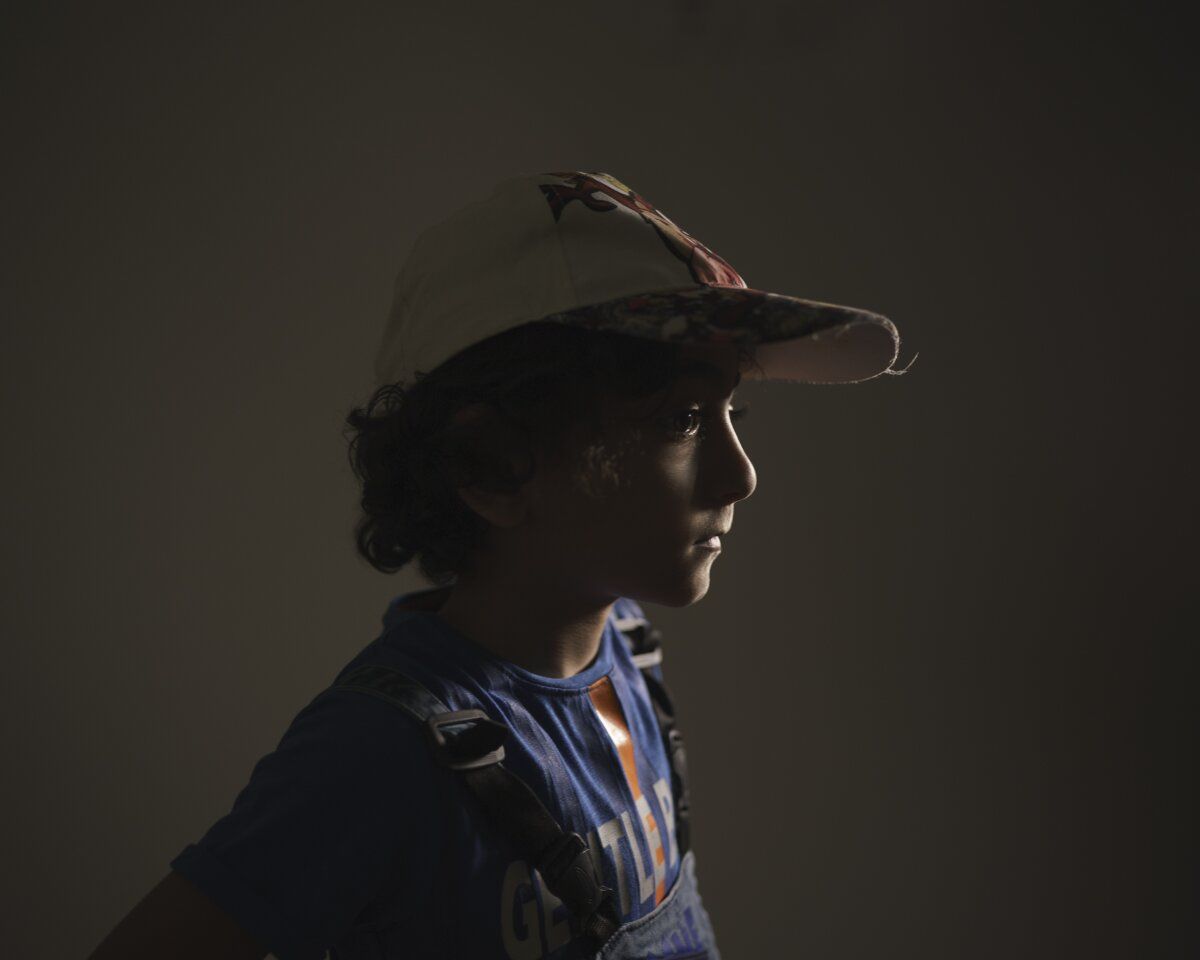 Haziran 20, 2021 | Beit Hanoun, Gazze Şeridi | 6 yaşındaki Kasım el-Masri, evinde bir portre için poz veriyor. 10 Mayıs 2021'de evlerinin yakınındaki bir tarlada meydana gelen patlama, en iyi arkadaşı ve kuzeni 7 yaşındaki Mervan'ı öldürdü. Babası Muhammed Atallah el-Masri, okulda bile ayrılmaz olduklarını söylüyor. Mervan'ın 11 yaşındaki tek erkek kardeşi İbrahim de öldürüldü.