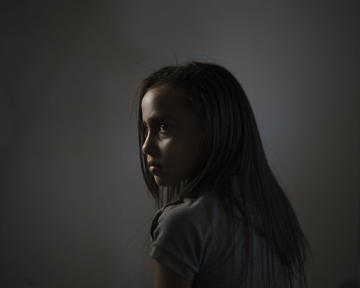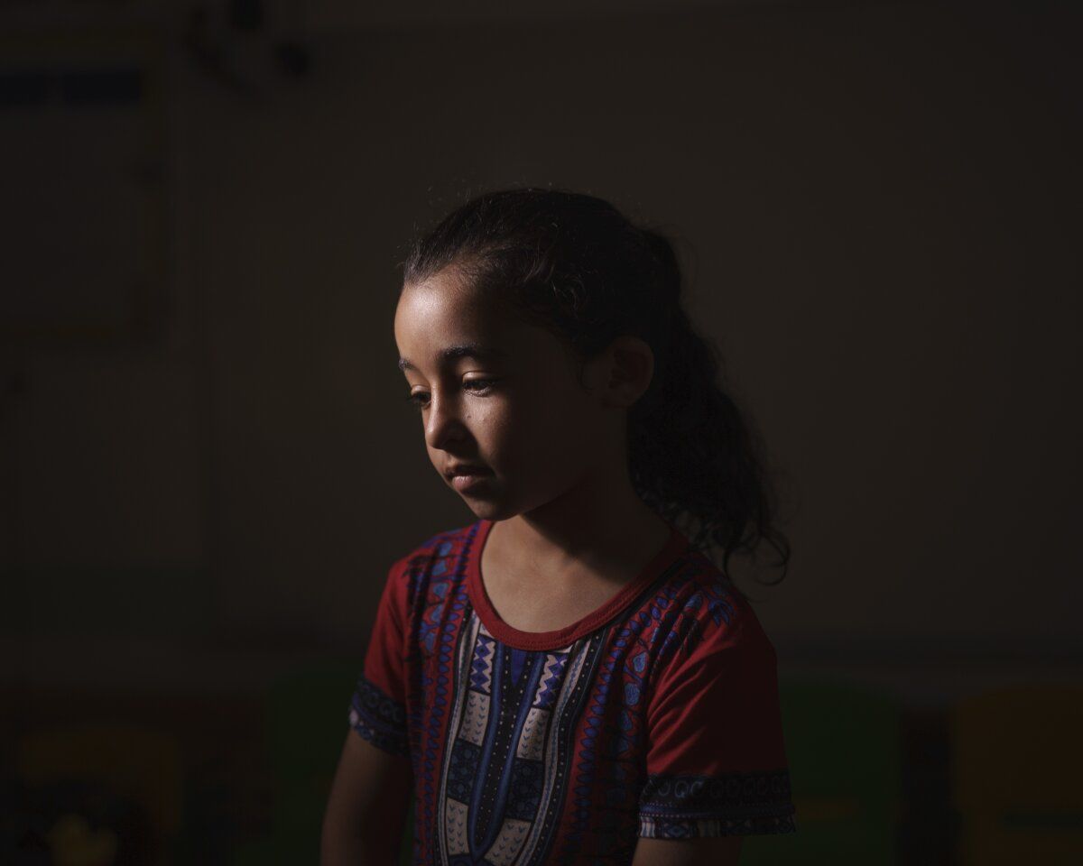 Haziran 11, 2021 | Gazze Şeridi | 8 yaşındaki Maya Abu Muawad, bir portre için poz veriyor. İsrail'in ailenin evine düzenlediği hava saldırılarından sonra Maya, annesinden ayrıldı. Yalnız ve korkmuş bir şekilde, daha güvenli bir yere giden bir ambulansa bindi. 15 dakika boyunca, ölmekte olan bir kişi ve komşusu olan yaralı bir çocukla birlikte ağlayan araca kilitlendi. Maya'nın ailesiyle yeniden bir araya gelmesi altı saat sürecekti.