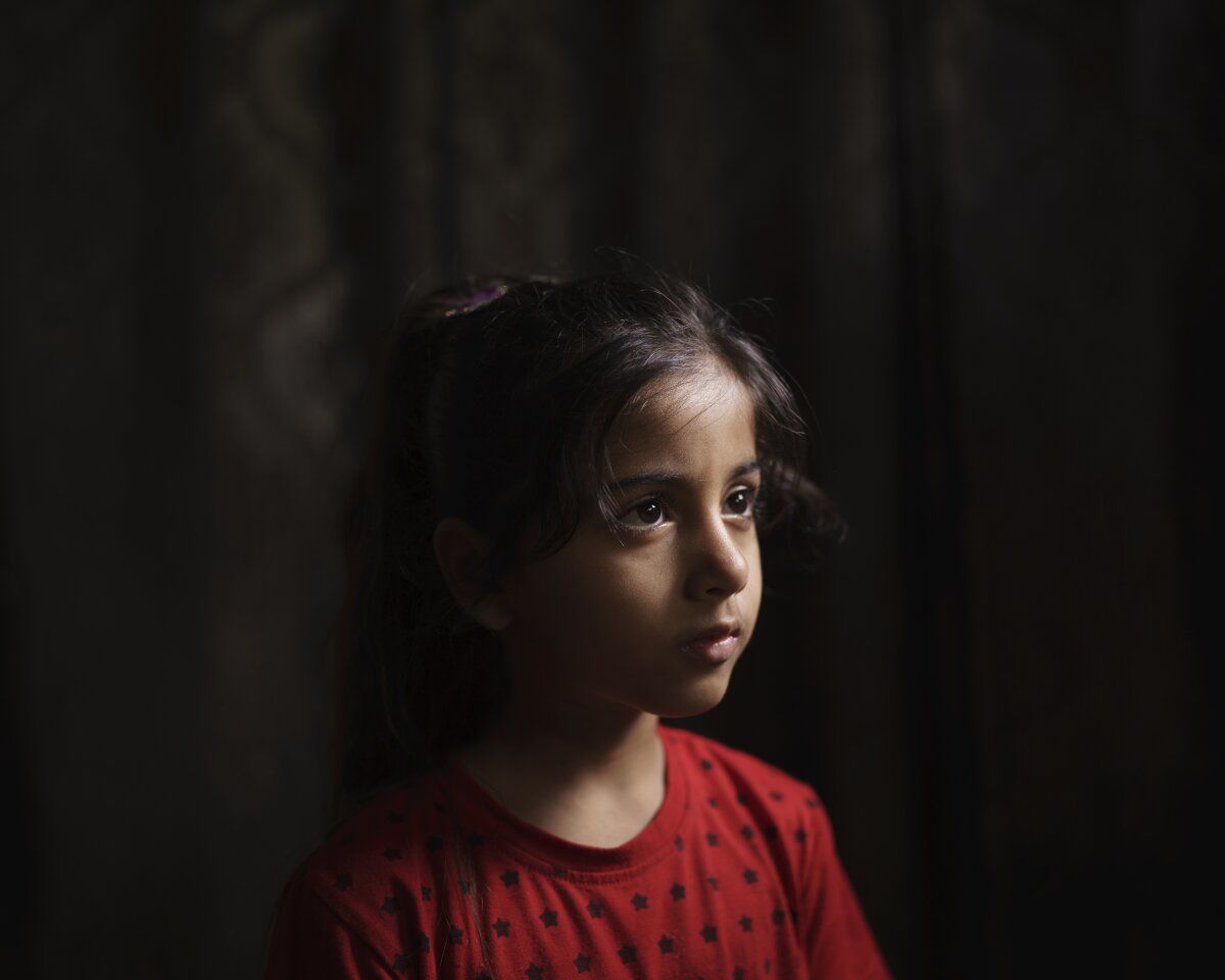 Haziran 16, 2021 | Gazze Şehri | 7 yaşındaki Suzy Ishkontana, kendi evinin bir hava saldırısında yıkılmasının ardından şu anda yaşadığı bir aile üyesinin evinde bir portre için poz veriyor.