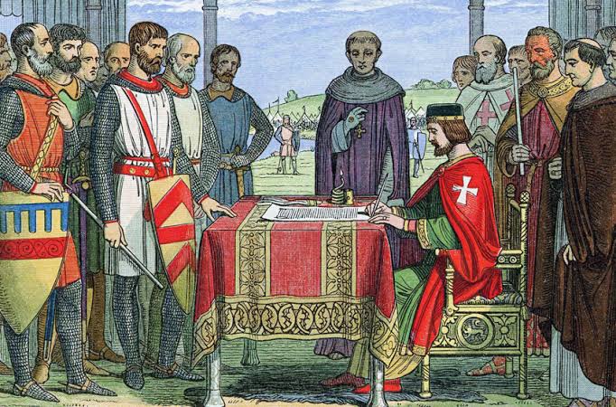 33- M.S. 1215 yılında, Magna Carta, İngiltere kralı John tarafından imzalanan bir anlaşma idi. Bu anlaşma, halkın haklarını ve hükümdarların sorumluluklarını tanımlayan ilk yazılı belgedir.